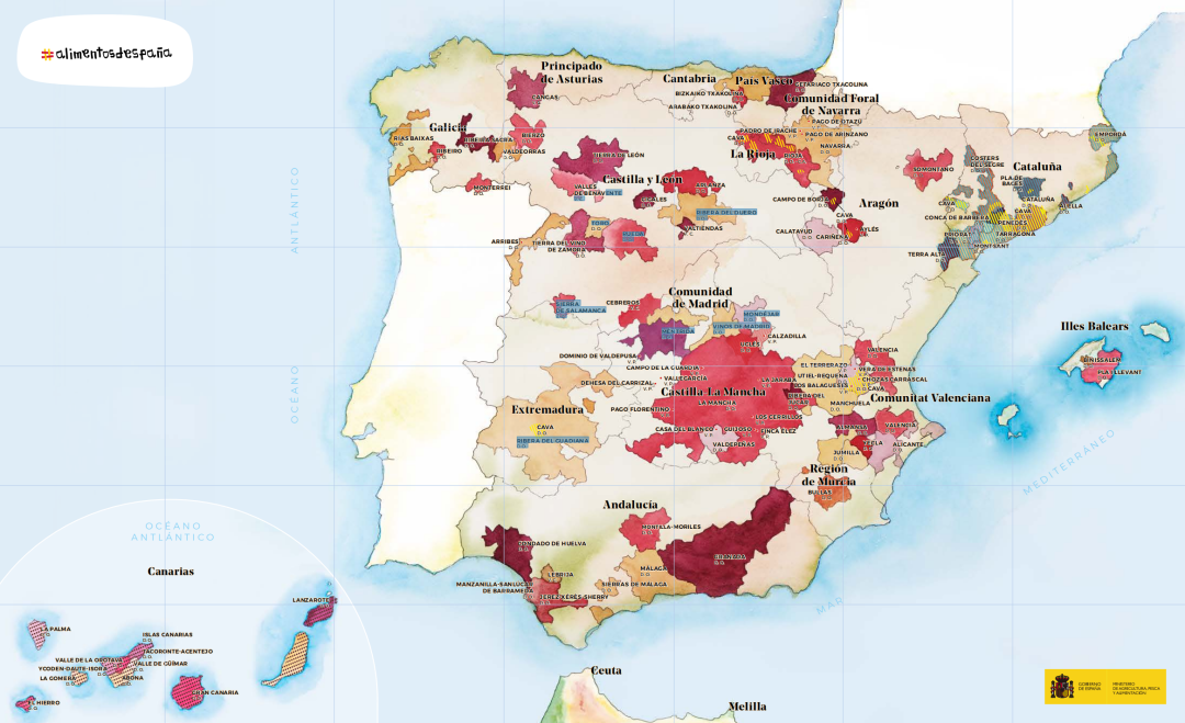 Foods Wines from Spain(西班牙美食美酒)官网根据风土的不同把葡萄种植区域分成了7块: