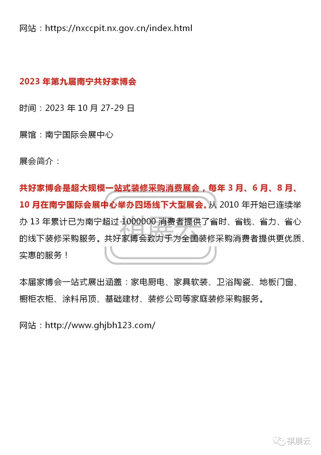 2023年10月份长沙国际会展中心展会排期| 2023年9月1日