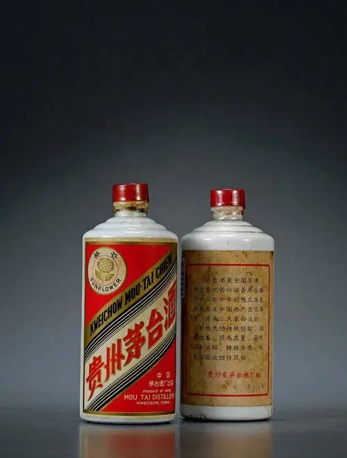 老五星(金轮牌):1953.5.1-1982.12.30生产的“五星牌”茅台酒;新五星:1983.1.1日至今生产的“五星牌”茅台;老飞天(飞仙牌):1959-1969年生产的“飞天牌”茅台酒;大飞天:1970-1985年期间生产的“飞天牌”茅台酒;黄飞天:1983-1985年生产的黄酱瓶特供“飞天牌”茅台酒;大葵花:1970-1975年生产的“葵花牌”茅台酒(1斤装有飘带);飘带小葵花:1970-1975年生产的“葵花牌”茅台酒(半斤装有飘带);三大葵花:1978年生产的贴“三大革命”背标的“葵花牌”茅台酒(1斤装无飘带);小葵花:1978-1982年生产的“葵花牌”茅台酒(半斤装无飘带);暗记葵花:1982-1983年生产的封膜有“茅台”暗记的“葵花牌”茅台酒(半斤装无飘带);小叶葵花:1970年由中国粮油食品进出口有限公司(山东青岛)拥有版权的“葵花牌”商标。贵州茅台酒厂1970-1983年所生产的“葵花牌”茅台酒使用,葵花图形为小叶。