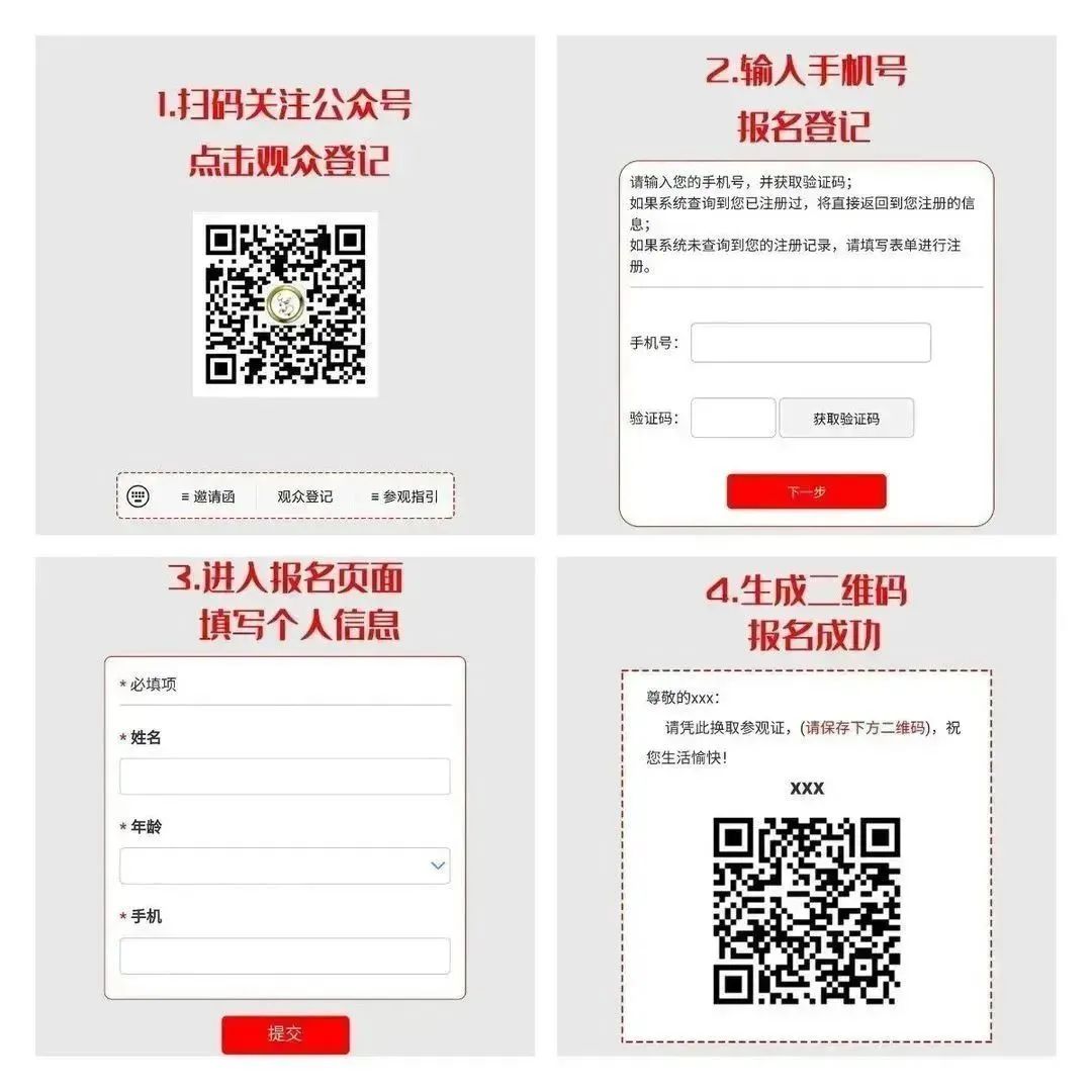 凭二维码领取参观证 步骤如下: