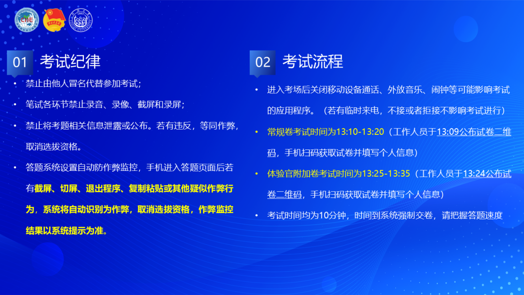 本次初试采用线上笔试答题的方式。在这一阶段,从候场到进入会议室,从宣读纪律到开始考试,各个环节都有序进行。本次考试检验了同学们的党史、团史、校史、进博会常识、志愿者常识,大家丰富的知识储备与高涨的服务热情令人印象深刻。