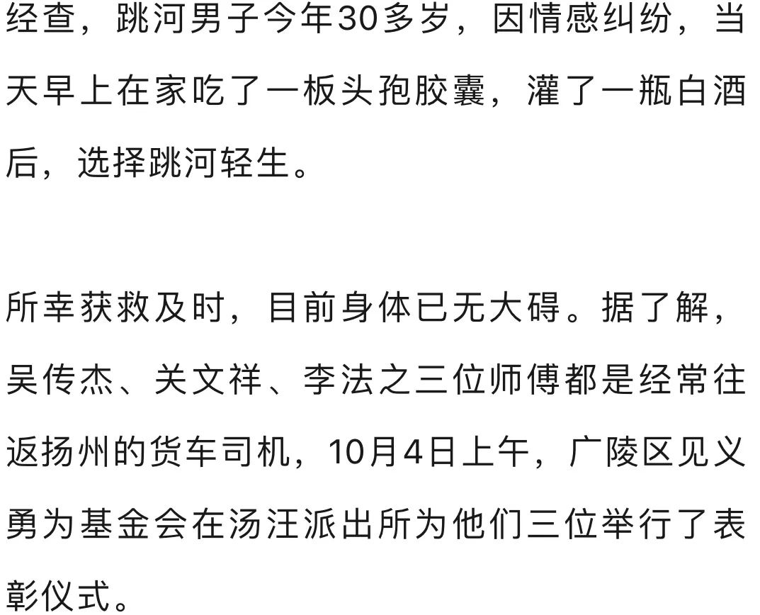 近日,328国道古运河大桥有一男子在吃头孢配白酒后跳河轻生。万幸的是,附近有三位好汉果断出手,将他救了上来。