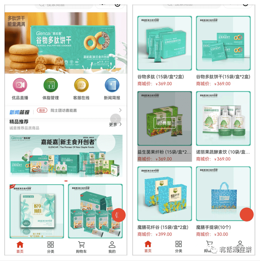 中食健康科技(山东)有限公司成立于2022年1月17日,注册资金300万元,公司法定代表人为马富莹,实际控制人为龚永喜。该公司所运营的商城名称为嘉能嘉优品商城。该商城运营的主要产品为谷物多肽、魔膳花纤谷、果蔬酵素、双益粉、藜麦饼干。