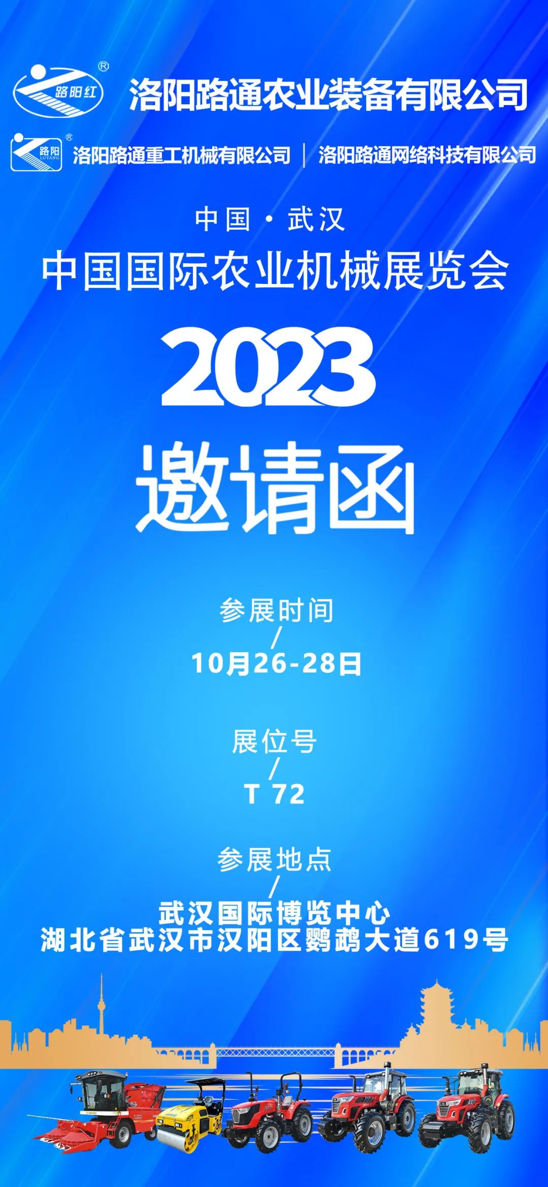 由中国农业机械流通协会、中国农业机械化协会、中国农业机械工业协会主办的2023中国国际农业机械展览会定于2023年10月26日-28日在武汉国际博览中心举办。