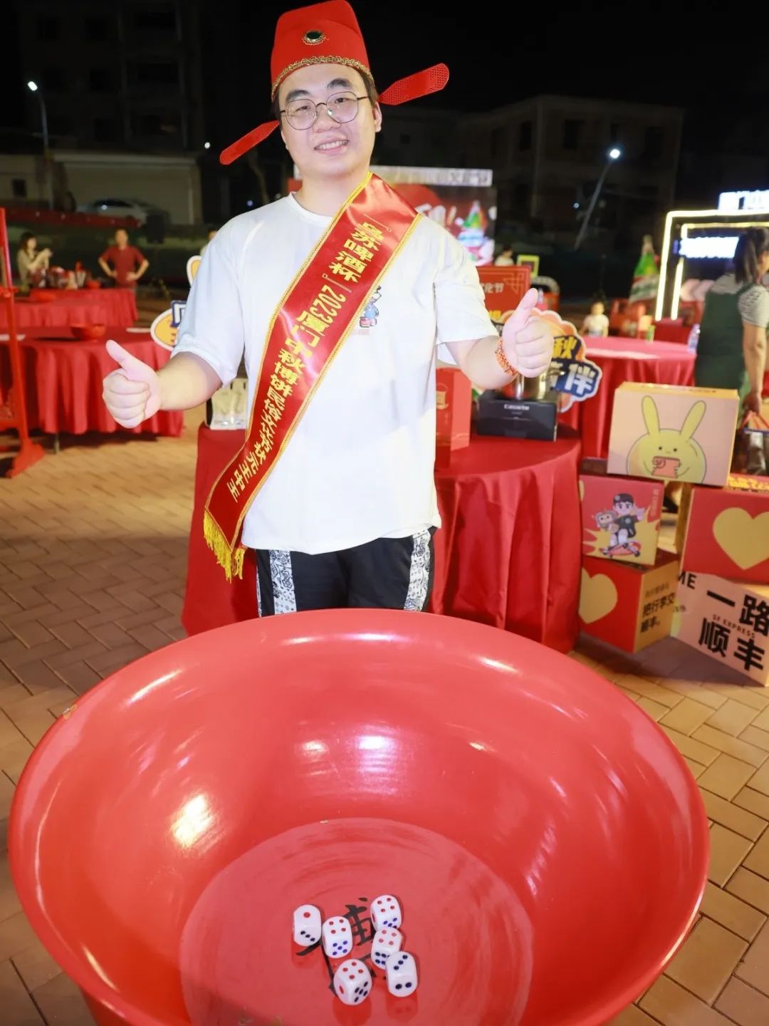 伴随着悠扬的歌声,现场100位入围决赛的嘉宾共聚一堂,“一秀、二举、四进、三红、对堂、状元....”一阵阵欢呼声、鼓掌声、欢笑声和骰子发出的叮叮当当脆响声,交织成一首快乐的中秋交响曲。被幸运之神眷顾的“状元”们一起争夺“王中王”终极大奖!