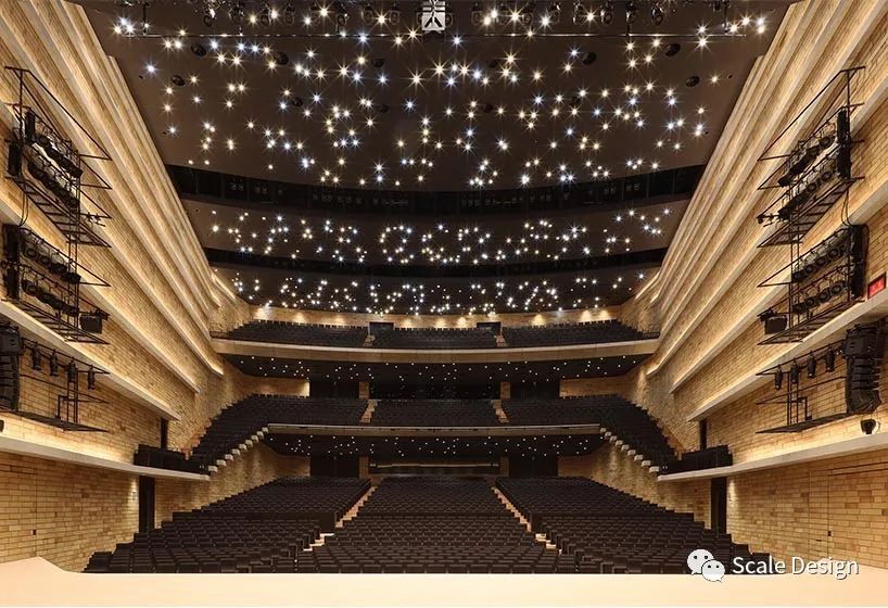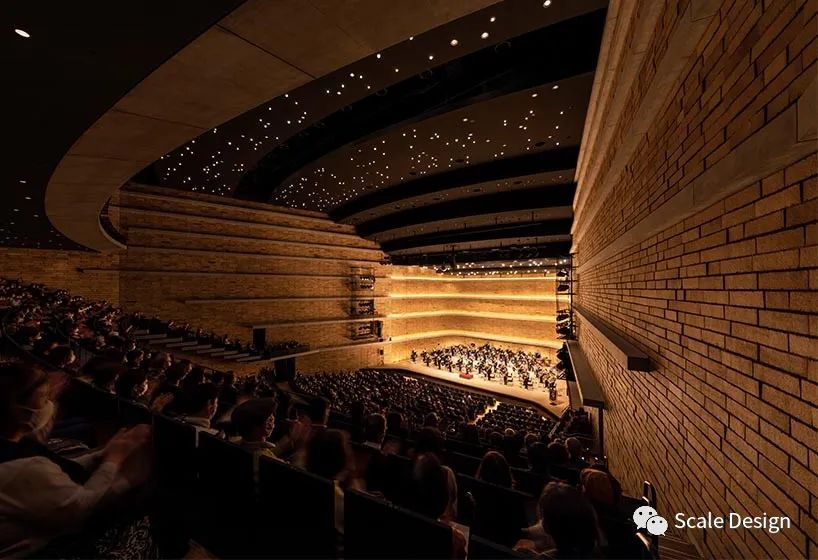 中型大厅是一个多功能剧院场地,采用扇形座位布置,可轻松、身临其境地观看舞台表演。内部砖墙是三维弯曲的,以更好地混合反射的声音,在整个座位区创造一个均匀的声学环境。公众经常用于小型音乐会和活动的小大厅还具有防振和隔音结构。它的四面墙中的每一面都向外倾斜五度,以获得更好的声学混合。