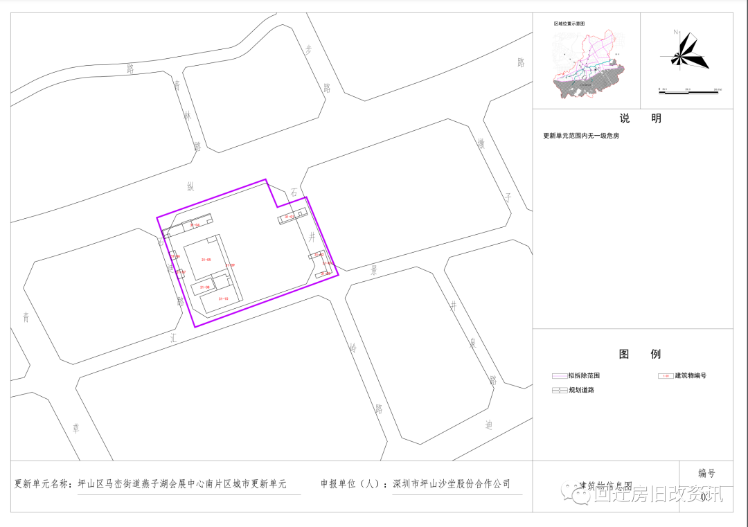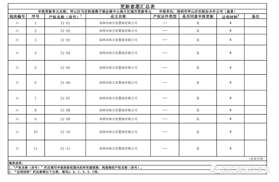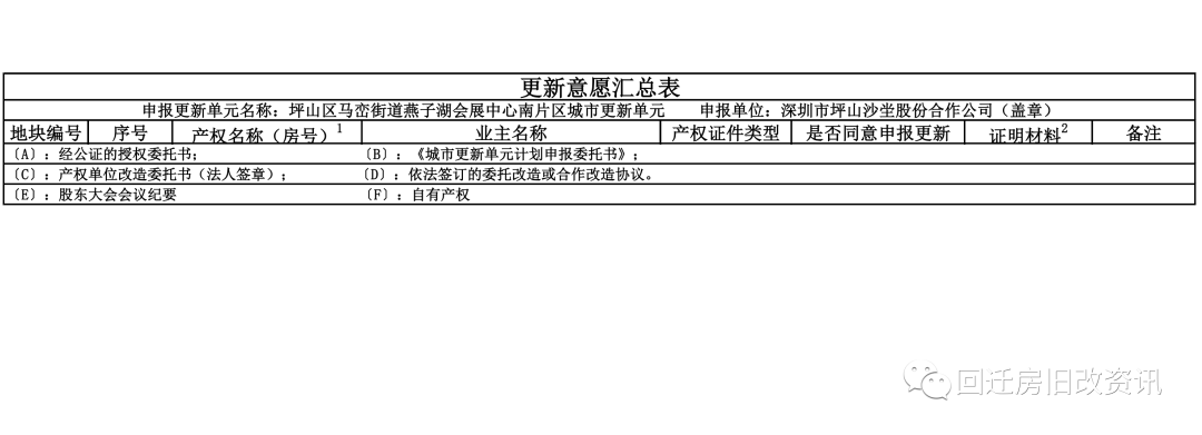 本次公示,仅为该更新单元范围内权利人是否同意申报列入深圳市城市更新单元计划的更新意愿进行公示,不涉及规划方案、搬迁安置补偿等具体事宜,不作为房屋确权的依据。