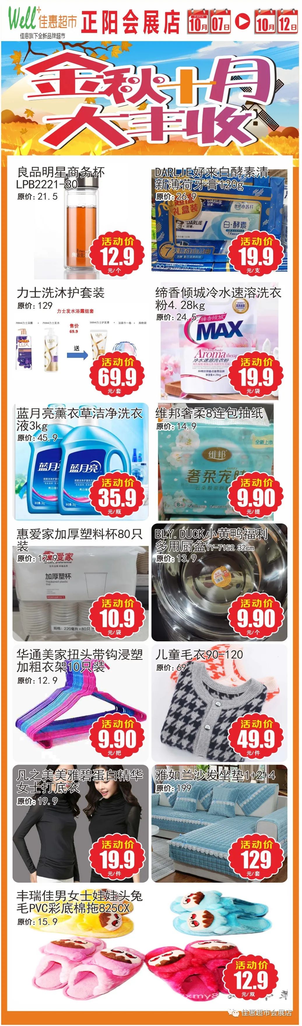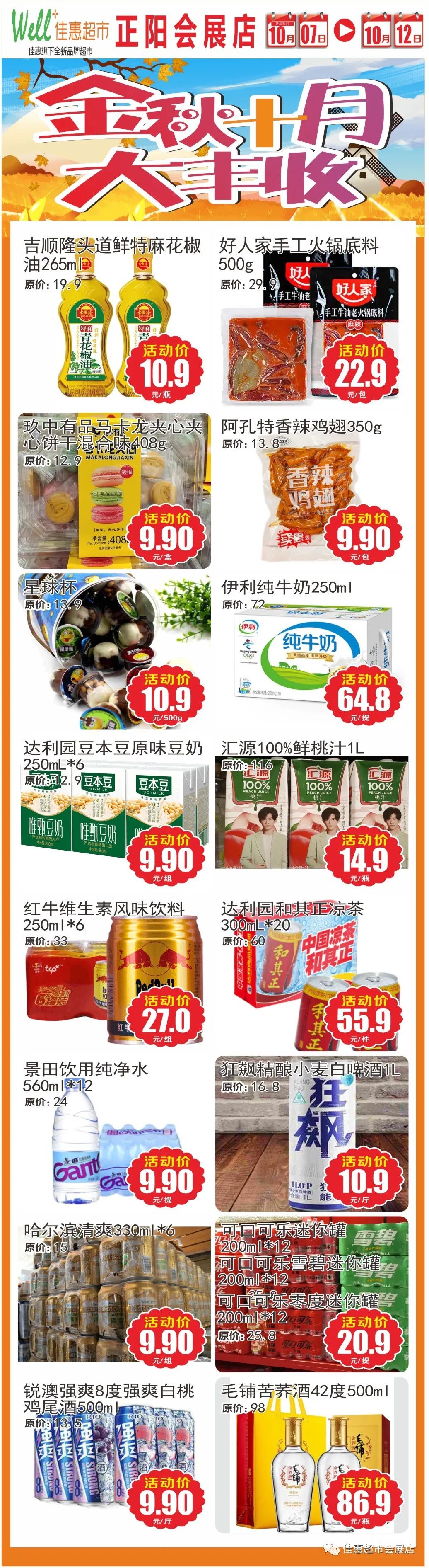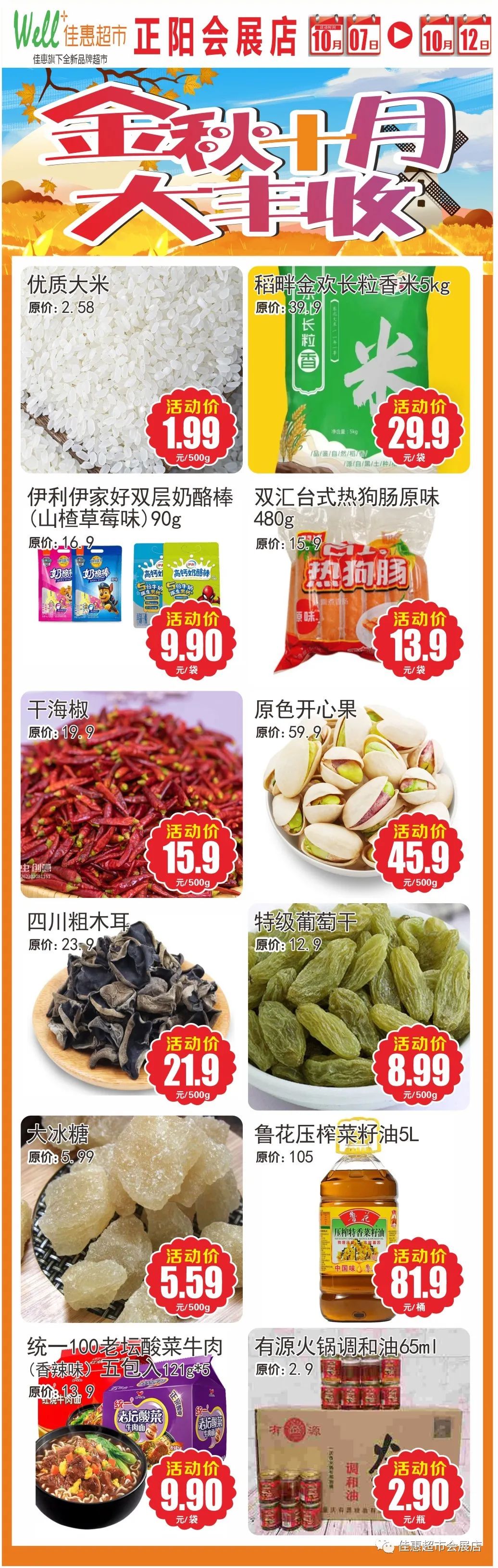 【well+佳惠超市●正阳会展店】10月7日--10月12日 金秋十月,大丰收 ,欢乐购 !