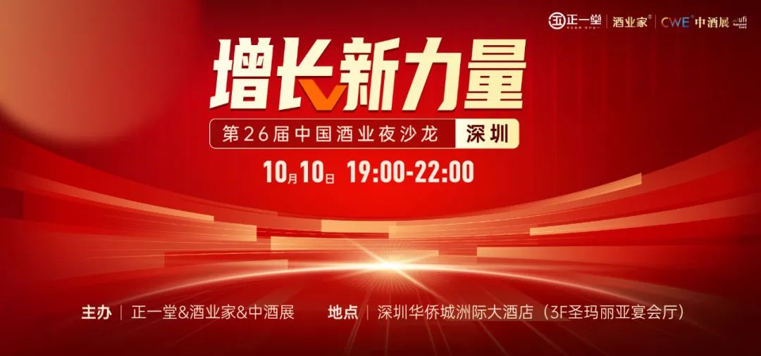为寻找酒业增长新力量,10月10日19:00——22:00,由酒业家、正一堂、中酒展联合主办的“增长新力量——第26届中国酒业夜沙龙”,将在深圳华侨城洲际大酒店(3F圣玛丽亚宴会厅)举办。