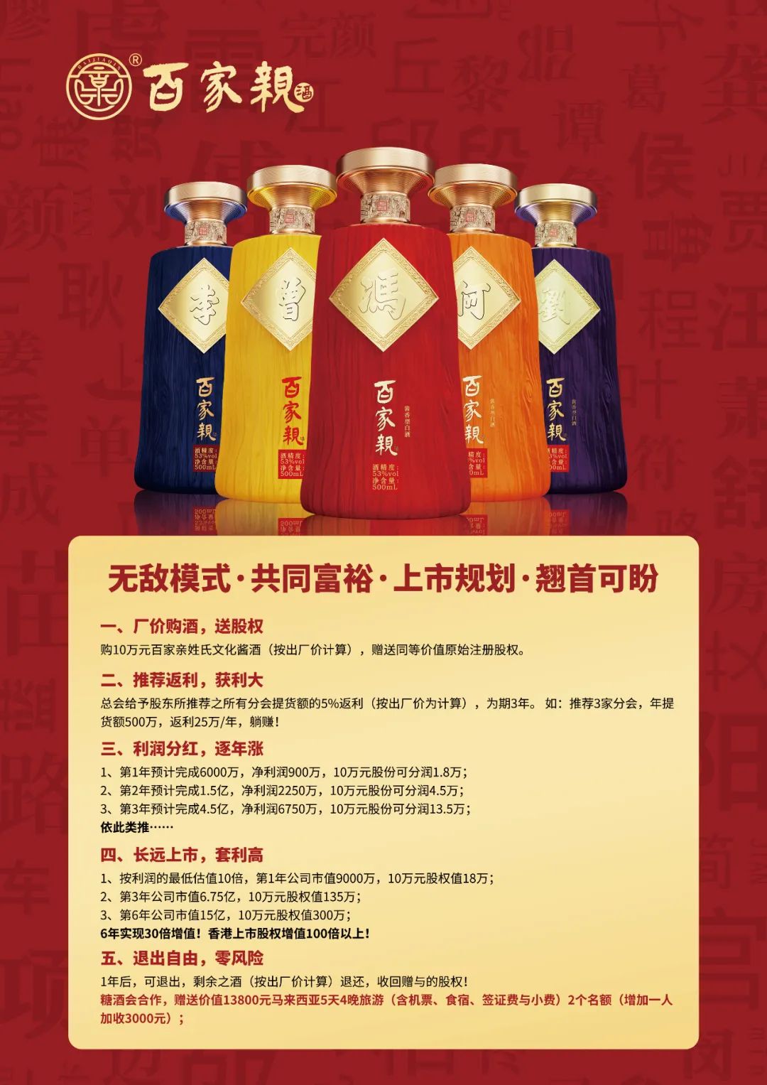 同时,现场还将开展一系列盛大招商活动,两大模式(传统+创新)同时上阵,突破行业内卷,多重政策强势助力,让经销商们轻松无忧加盟。百家亲诚邀您拔冗出席,共话酱酒未来!