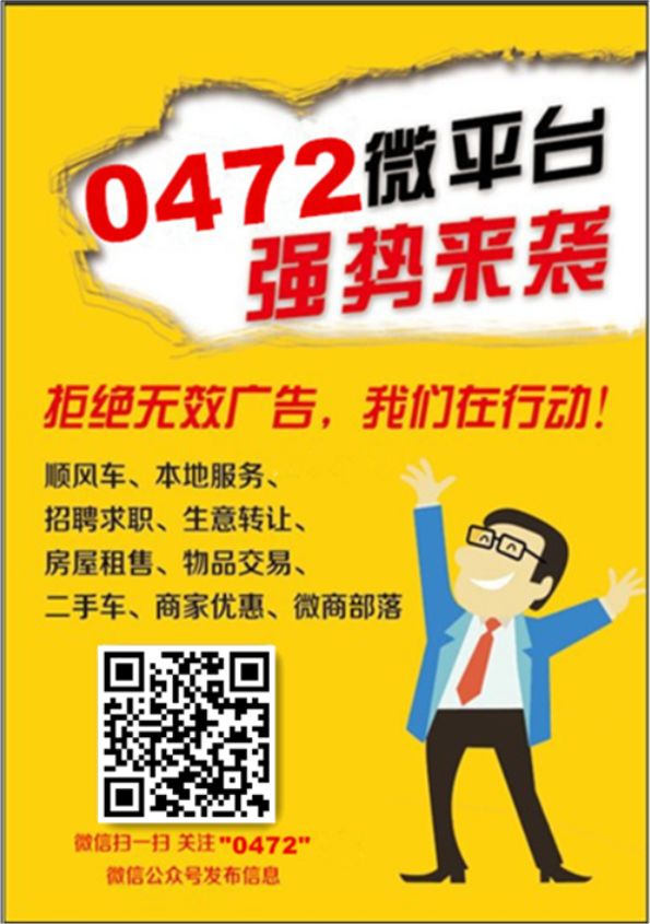 点击底部阅读原文 包头找工作、找房子、找车子、找家政、找二手、找商机、找优惠、找0472微平台就能办了,为您提供280万包头人共享的信息发布平台