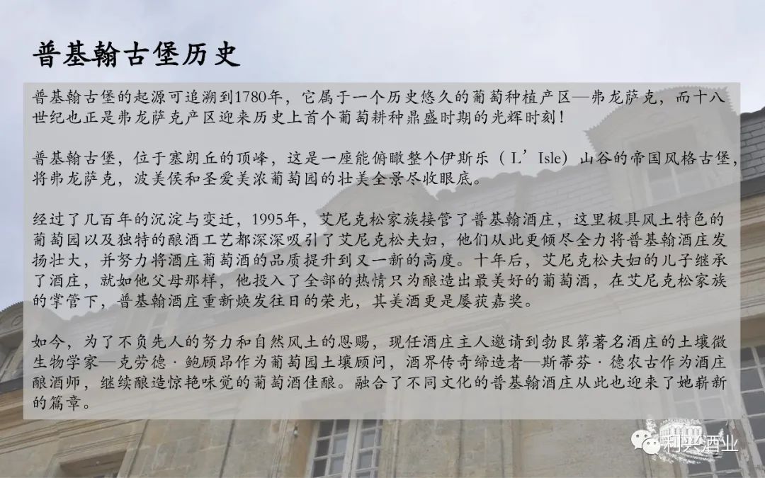 +U进口葡萄酒是嘉裕集团旗下嘉裕百货进口葡萄酒项目,我们在法国波尔多拥有四个精品酒庄,其中曼勃朗古堡和普基翰古堡位于著名的波尔多右岸的吕萨克.圣爱美隆产区和佛朗萨克产区,这两个产区均盛产高档葡萄酒而闻名。