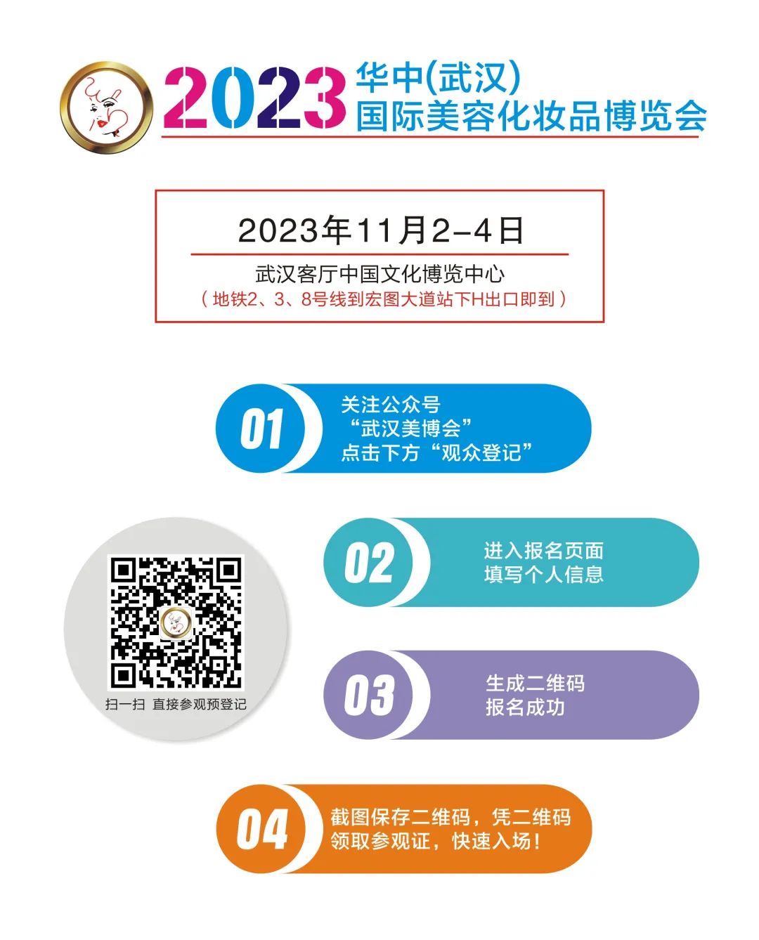 本届2023华中(武汉)国际美容化妆品博览会将于11月2-4日在武汉客厅中国文化博览中心盛大开幕!