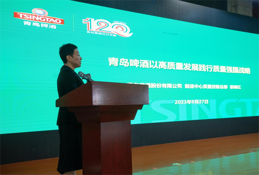青岛啤酒股份有限公司生产制造中心质量控制总部部长娄晓红介绍了青岛啤酒高质量发展的成果显著,并从“质量理念守正创新、先进质量文化蔚然成风”;“从‘田间’到‘舌尖’确保食品安全”;“创新突破,以魅力感知质量为生活创造快乐”;“推进全价值链绿色低碳高质量发展”;“建设世界一流工厂、打造卓越制造系统”五个方面详细讲解青岛啤酒取得的系列成就。