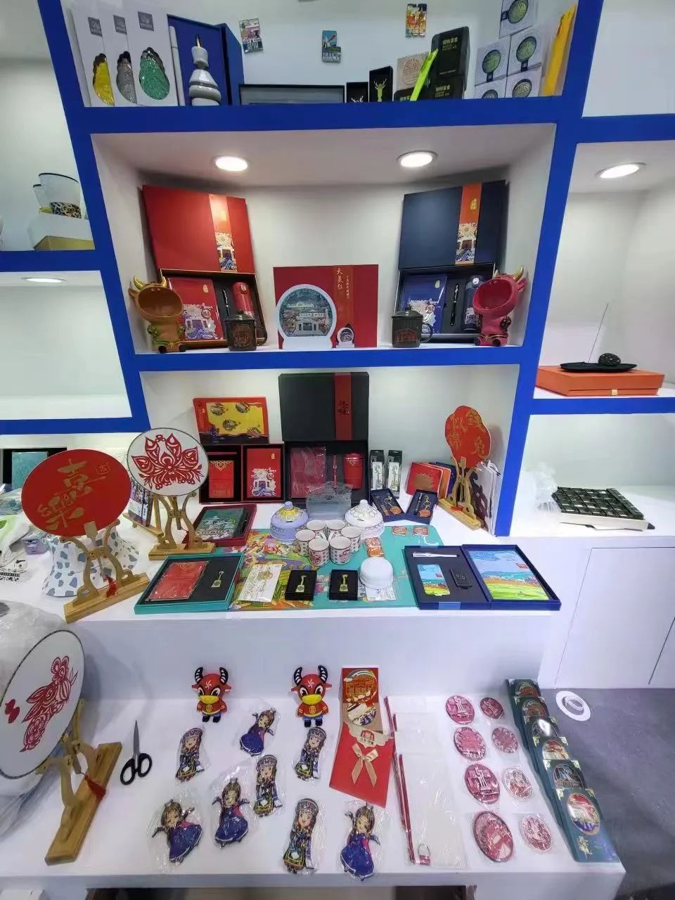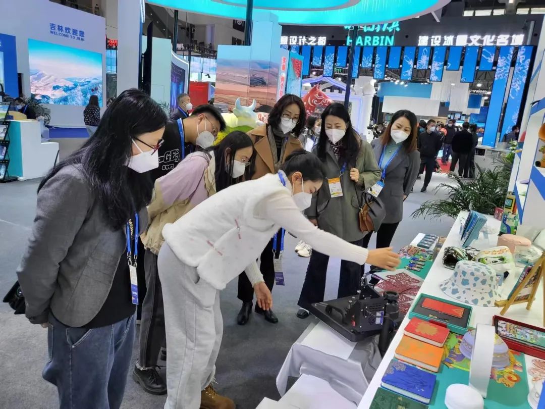 博览会现场,阿迪雅旅游礼品有限公司的展位上排列了各种精美绝伦的特色旅游礼品,主要是红色文创系列、民族元素文创系列和剪纸结合红色文创DIY的文创产品,提高了消费者的体验感,琳琅满目的多元旅游礼品吸引了现场许多观众驻足观看。