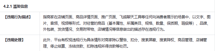 其他商品信息未按《商品信息发布规范》或平台其他管理规则发布的场景。