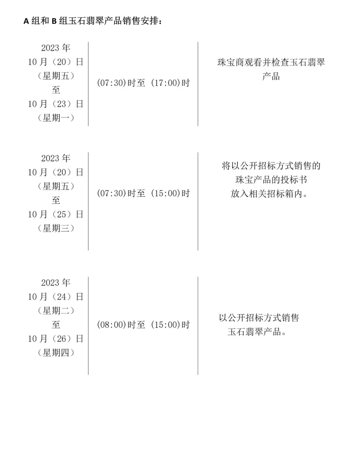 展会上将以外币-美元规定珍珠产品的底价,将以外币-美元,或者规定批准的其它外币币种进行相关珍珠产品的结算工作;将以外币-美元规定宝石产品的底价,将以外币-美元,或者与欧元等价的美元、人民币或者泰铢进行宝石产品的结算工作;将以外币-美元规定玉石翡翠产品的底价,以外币-美元,或者与美元等价的欧元、人民币或者泰铢分别进行(A)组和(B)组玉石翡翠和玉石翡翠成品的结算工作。珍珠,珠宝和翡翠玉石产品将按照如下公开招标的方式进行销售:序号 | 种类 | 基础价格 |