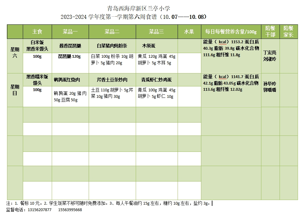 备注:饭菜不够可免费添加。食堂监督电话:13156207877 15563995668
