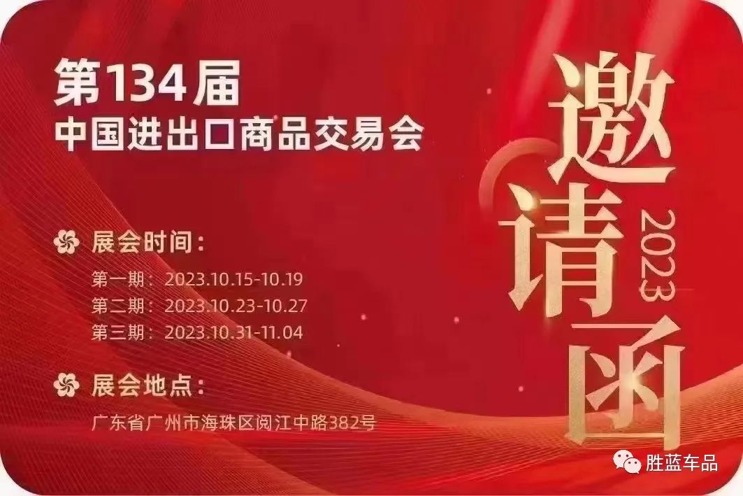 第134届广交会将于2023年10月15日在广州琶洲展馆开幕。第一期以工业类题材为主,包括电子及家电、电子消费品、照明、车辆及配件、机械、五金工具、化工产品、新能源等。胜蓝车品乘势而上,正火热筹备第一期展会中。