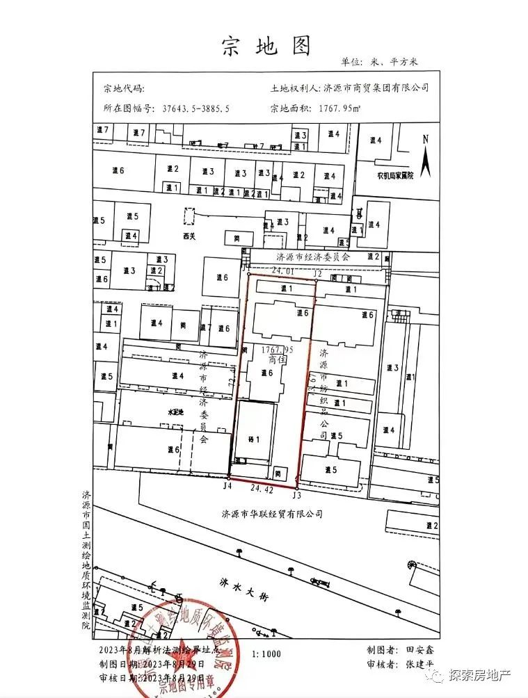 济源市商贸集团有限公司(济源市百贸公司)申请将依法取得的位于济水大街北侧、老汽车站对面的地块办理不动产登记,后我单位对该地块进行不动产权籍调查,该宗地邻宗地块权利人“济源产城融合示范区工业和科技创新委员会(济源市经济委员会)”、“济源市煌埠纺业有限责任公司(济源市纺织品公司)”、“济源市华联经贸有限公司”未按要求履行相应的权利和义务。根据《不动产权籍调查技术方案》相关规定,现将缺席定界结果(详见附图,界址J1—J4、J4—J1为缺席指界的界线)予以公告,公告期十五个工作日,自发布之日起算。公告期满定界结果自动生效。
