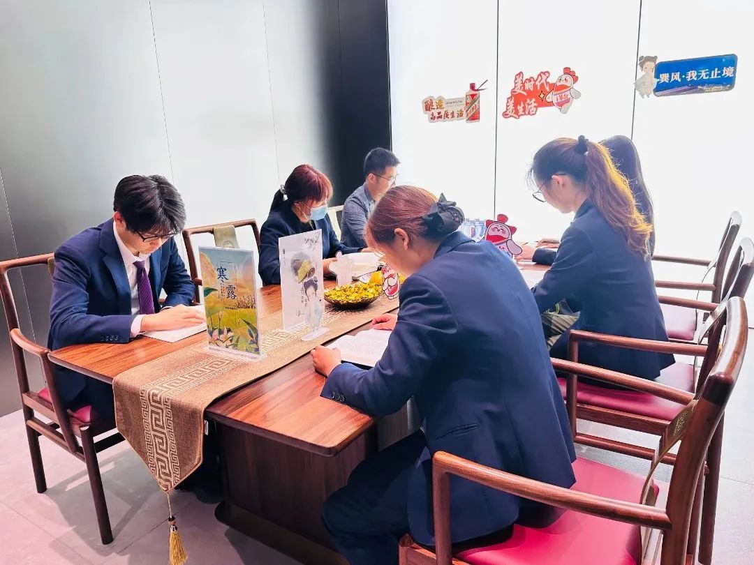 10月8日,江苏省苏食酒业有限公司在草场门大街贵州茅台专卖店内开展“美酒润书香,秋露阅美好”为主题的寒露节气读书会,以书会友,大家风雅相聚,以诗酒为伴,诵读茅台经典,深度体验中华“时序文化”,畅叙茅台文化之美。于书中汲取温暖的力量,共同学习中国二十四节气习俗和特点在书本中畅享文学之美。