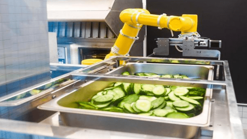 炒菜机器人是智能餐饮业的重点部分,其通过机器学习、图像识别等技术能够模仿、学习到各种食品菜品的风味、模样,并由智慧烹饪间和机械臂等智能工具炒煮出标准化、一致性很高的大众风味菜肴。