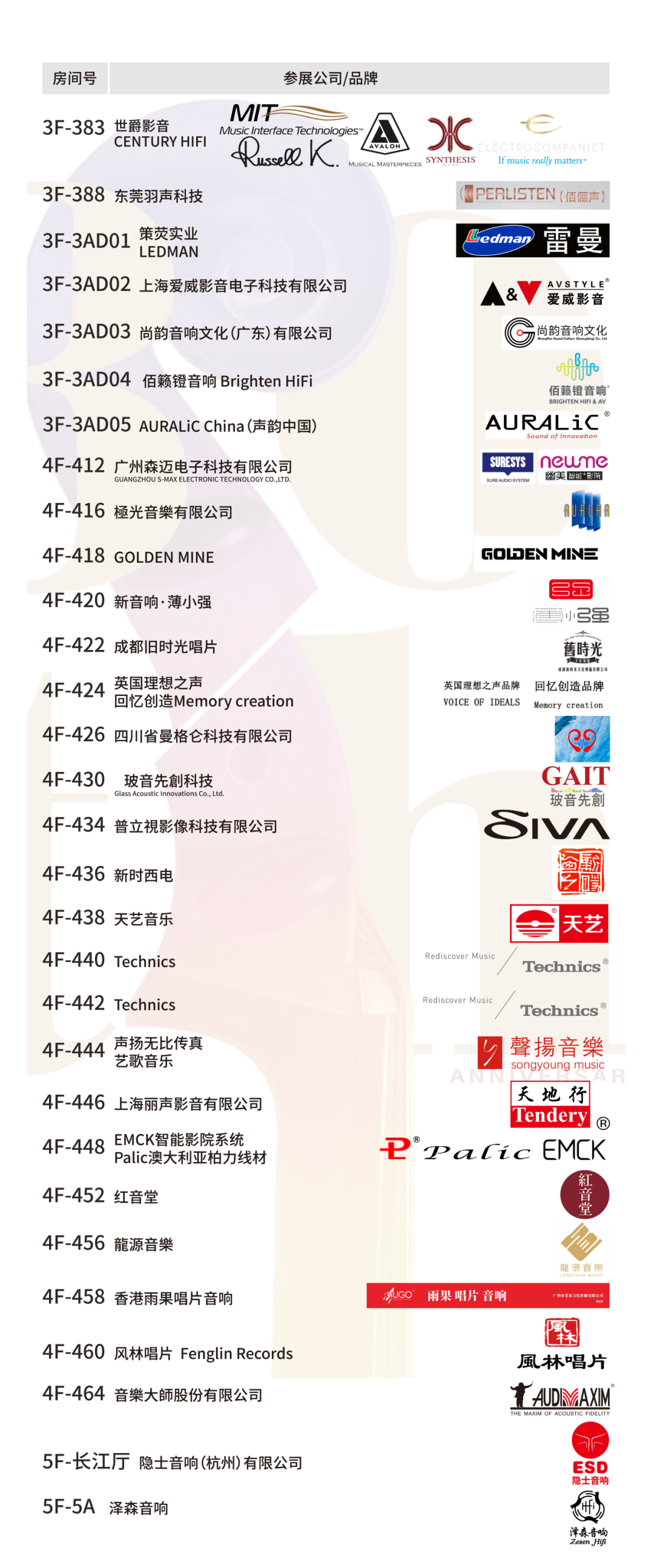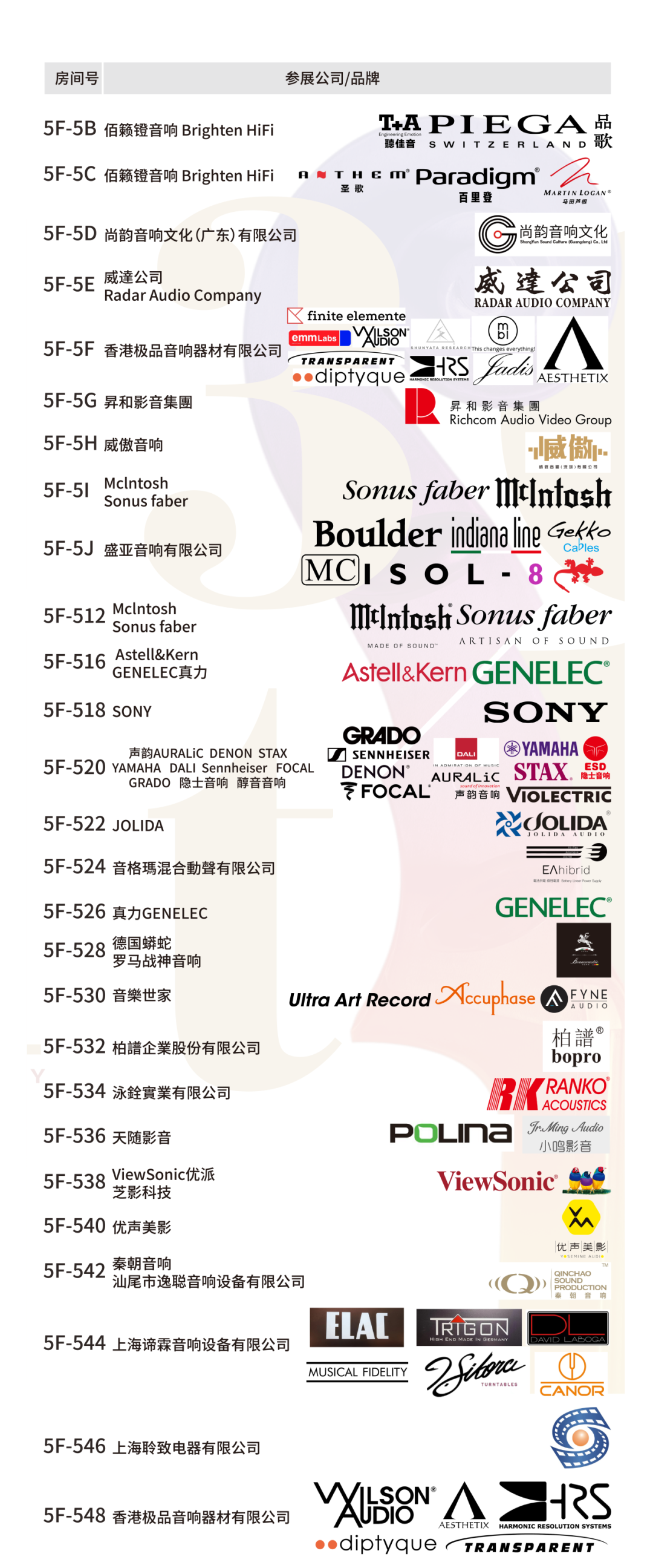 会议室5B/5C | 10月13日 10:15-10:45 | PIEGA新品发布会 |