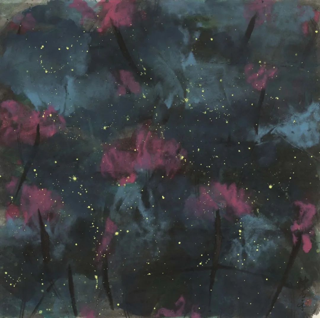 ▲张亚平,雾从花处生,彩墨,51x50cm,2023