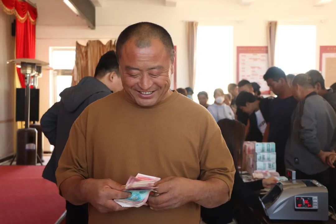 昂乃养殖小区的落地不仅壮大了大沁他拉镇各入股村的集体经济,更直接让昂乃村村民得到实实在在的经济增收。来到村部,一年一度的收割青贮结算会也在热闹进行。现场,村民们依次在预付款发放清单上签字、摁手印、领取现金,气氛和谐愉悦。
