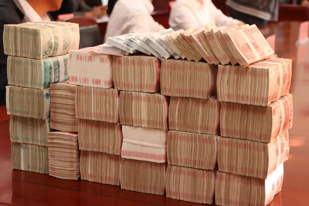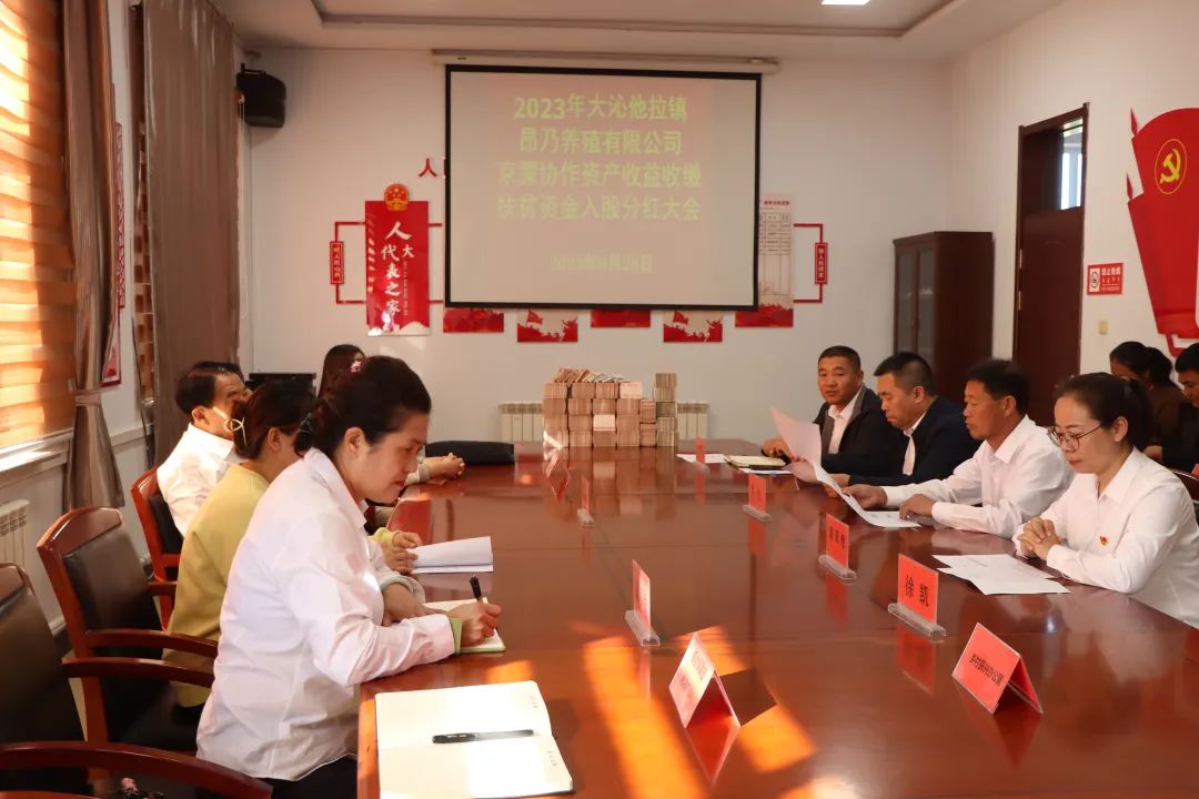 一大早,大沁他拉镇昂乃养殖有限公司京蒙协作资产收益收缴扶贫资金入股分红大会在镇政府举行。现场,200多万元现金堆叠起一座小山,各入股村代表齐聚一堂,按照入股比例领取分红金,喜悦心情溢于言表。