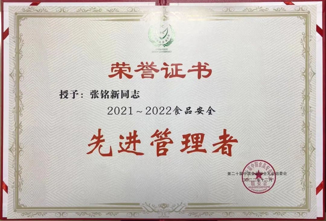 经大会专家组考察评审,泰山酒业再度凭借过硬的产品质量和诚实守信的规范经营,被授予“2021-2022食品安全诚信单位”荣誉,泰山酒业董事长张铭新被授予“先进管理者”称号。这也是泰山酒业连续三年在中国规格最高、影响最大的食品安全年度盛会上荣获重磅奖项。