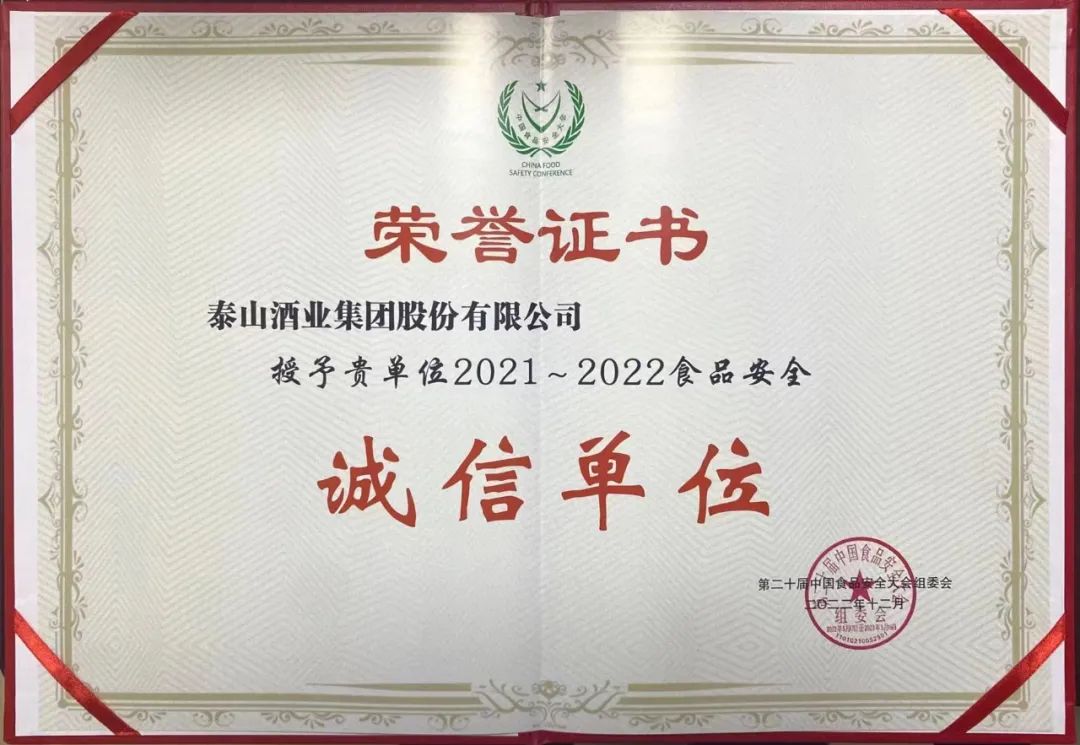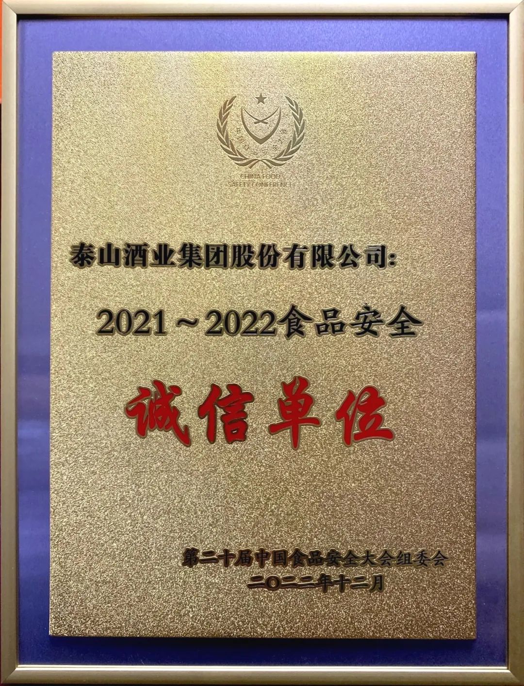 在高质量、可持续发展的道路上,泰山酒业始终把食品安全作为企业发展的基石,不断强化全员质量意识,积极推进全面质量管理,并取得了斐然成绩,连续三年荣获食品安全重磅奖项。未来,泰山酒业在昂首奋进新征程、谱就质量强企新篇章的同时,也将为食品安全不断助新力,为健康中国持续赋新能!