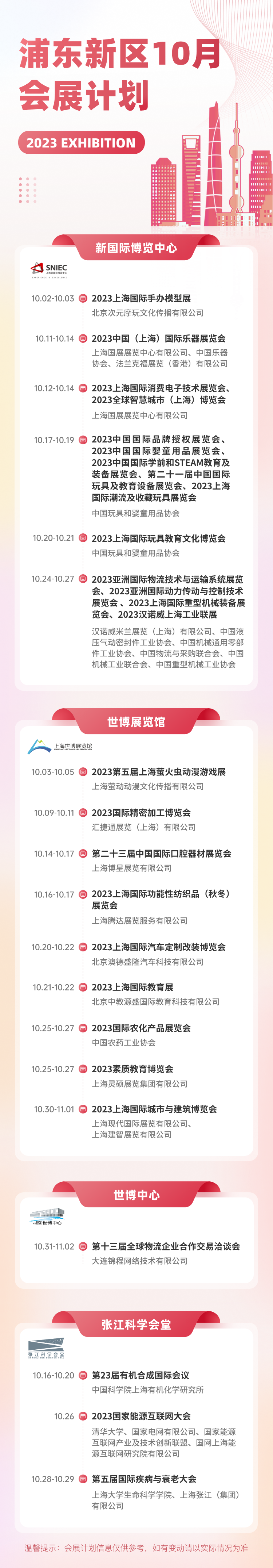 本月浦东将有哪些会展举行?在新国际博览中心,将举办中国(上海)国际乐器展览会、全球智慧城市博览会·上海等;在世博展览馆,将举办2023国际精密加工博览会、2023上海国际教育展等;在世博中心,将举办第十三届全球物流企业合作交易洽谈会;在张江科学会堂,将举办第23届有机合成国际会议、第五届国际疾病与衰老大会等。一起来看详情↓