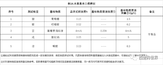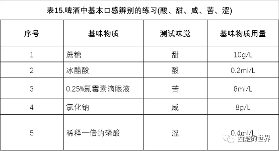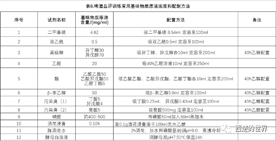 啤酒品评训练常用基味物质原液浓度和配制方法见表8