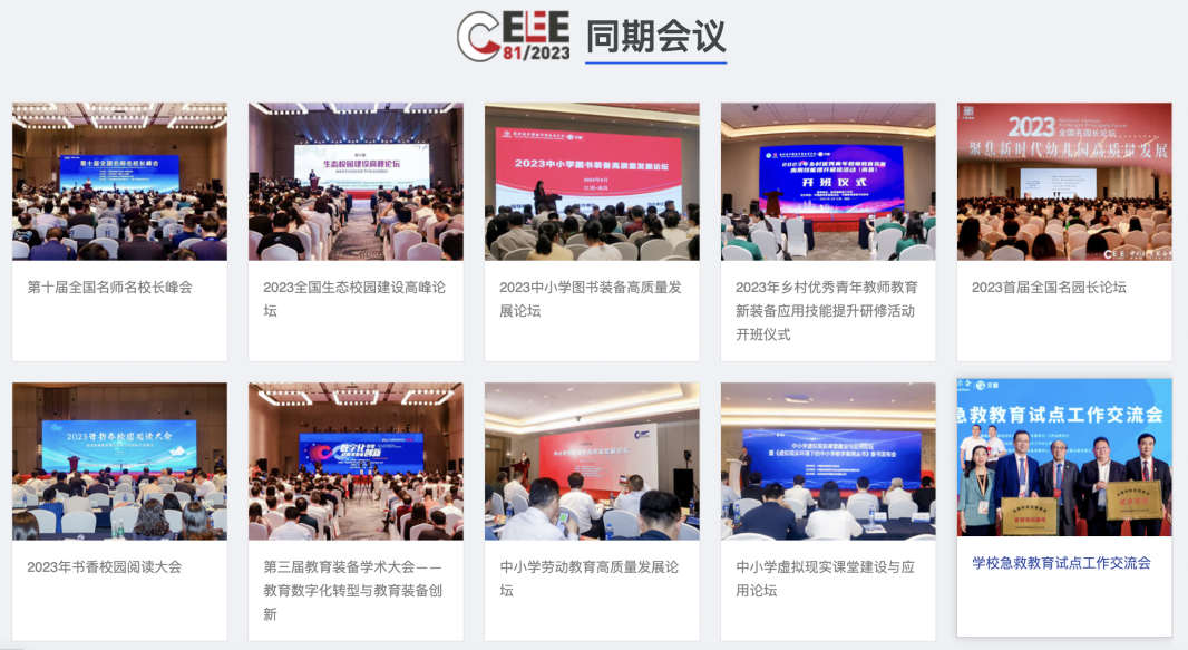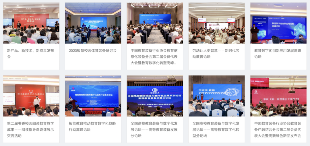 全面展示学前教育、基础教育、职业教育、特殊教育和高等教育所需教育装备产品和服务。包括实验室设备、信息化设备及教学软件、功能/学科教室设备、STEAM教学设备、音体美设备、文教图书及馆建资源、学校后勤用品、幼儿游艺器材及儿童玩具、教育服务与培训资源、公共卫生及医疗健康设备、职教实训设备等。