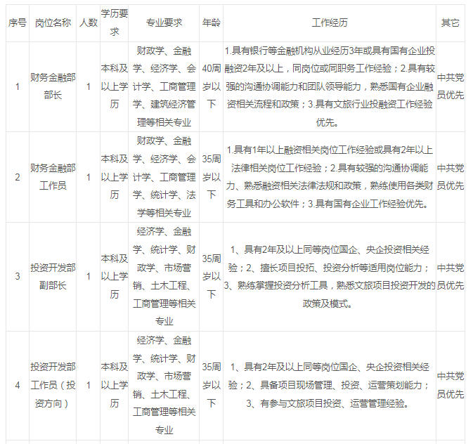 因业务发展需要,宜宾金旅集团有限公司经研究决定,面向社会公开招聘员工5名,现将有关事项公告如下:
