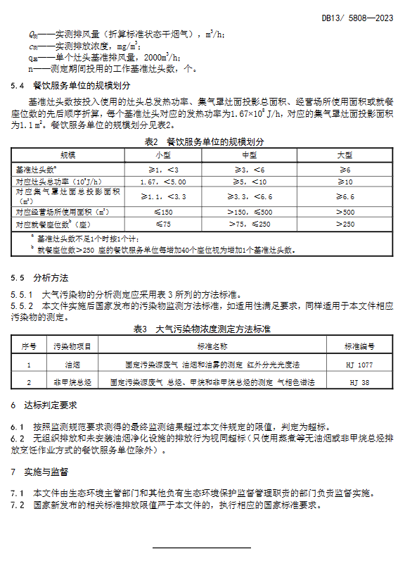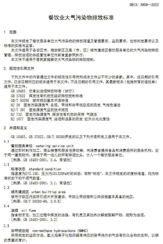 该标准已于2023年8月17日经过省政府批准。考虑到发布后需要解读宣传,部分餐饮服务单位升级改造油烟净化设施也需要一定时间,并综合考虑我省餐饮业现状和大气污染防治需求,分阶段实施:2023年12月1日起在各市(含定州、辛集市)、雄安新区城市建成区内实施,自2025年1月1日起扩展至全省各县(市)建成区。