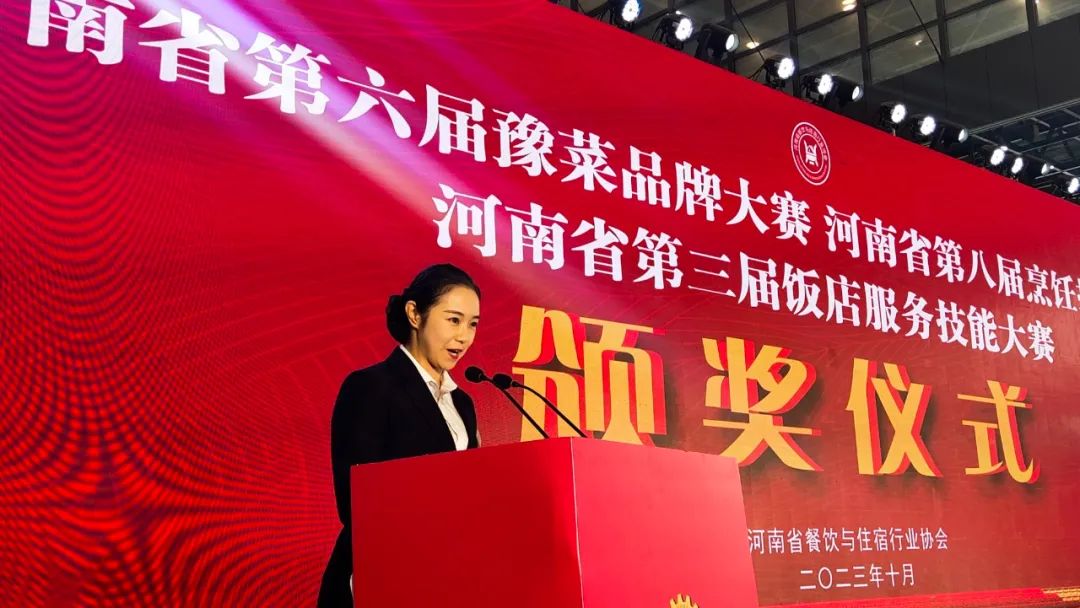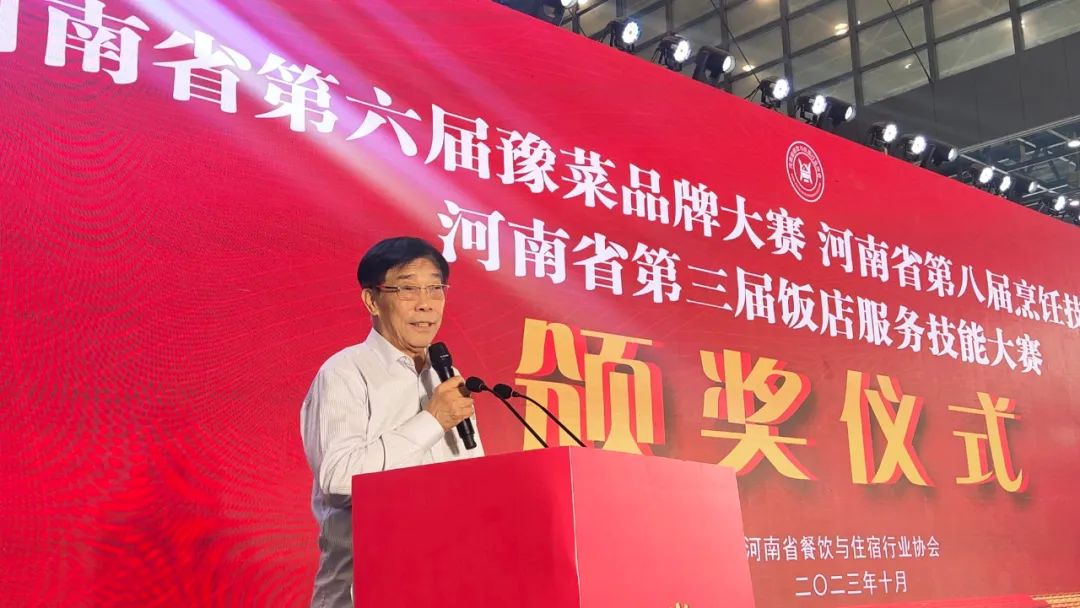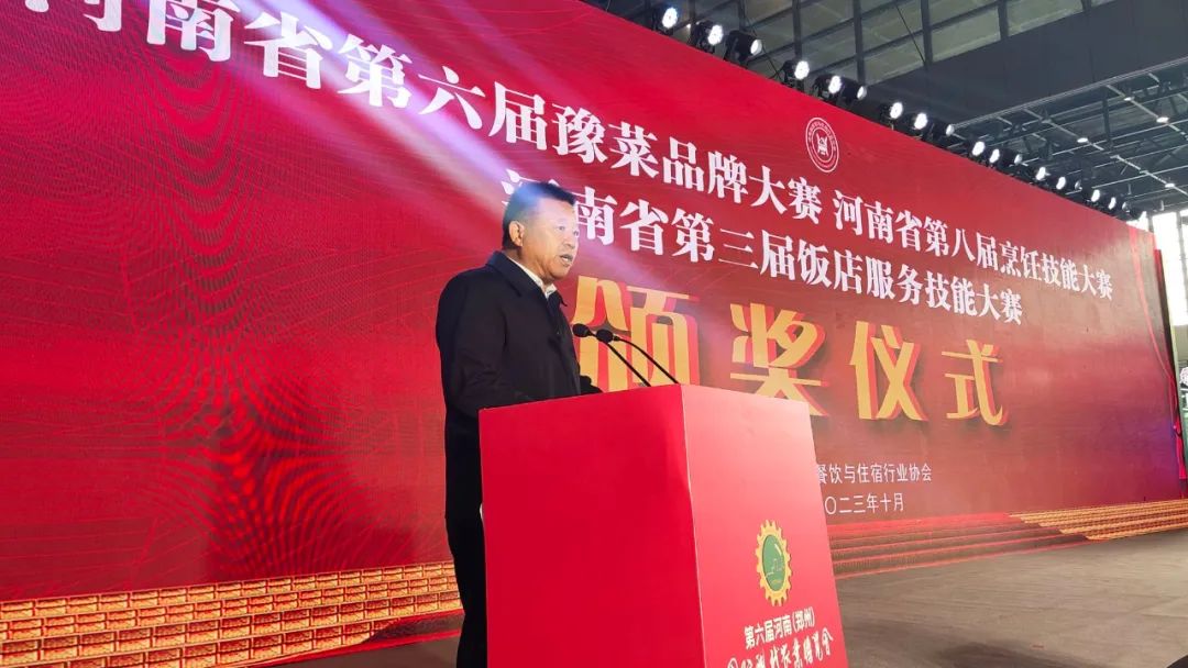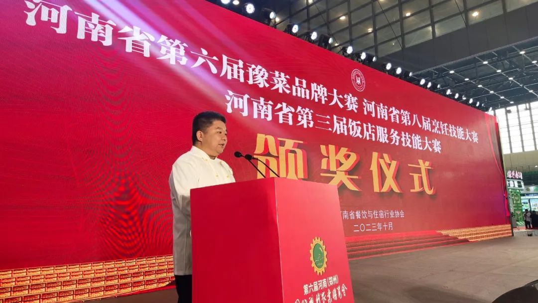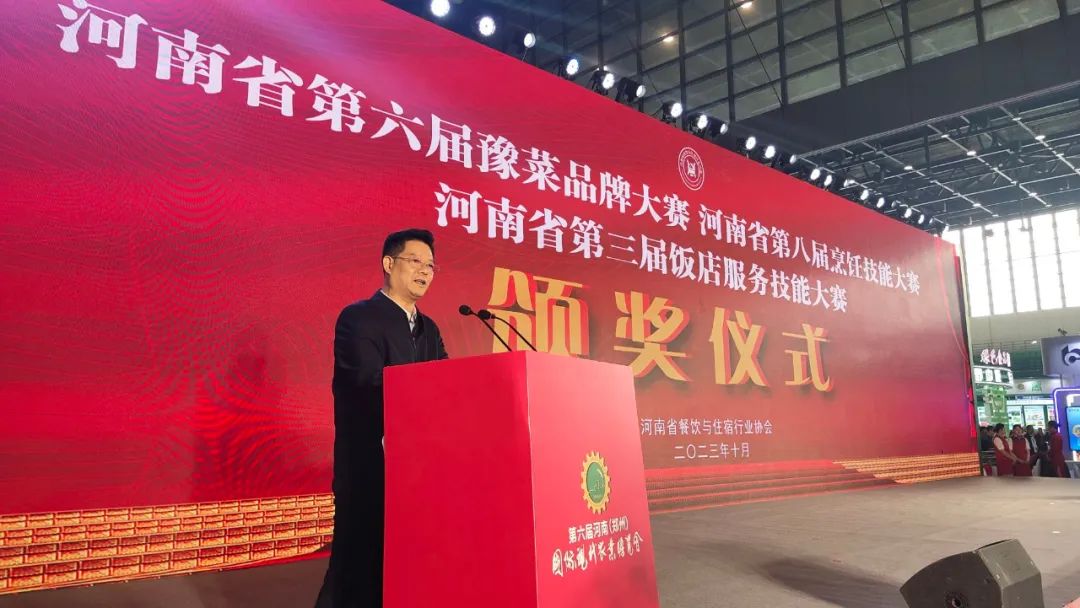 颁奖仪式由河南省餐住协副会长兼秘书长宋春亭主持,驻会副会长、三项大赛副总裁判长刘志全宣读《关于河南省第六届豫菜品牌大赛、河南省第八届烹饪技能大赛、河南省第三届饭店服务技能大赛获奖名单的通知》,河南商务厅二级巡视员方建佳致辞,河南省餐饮与住宿行业协会会长张海林总结讲话。