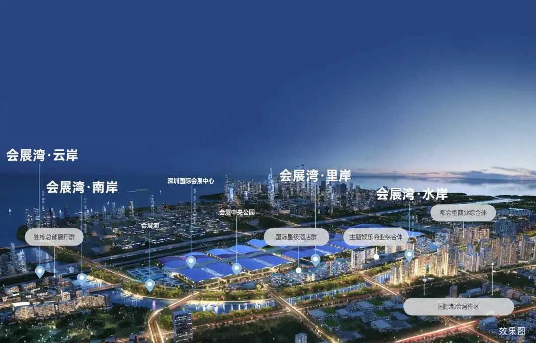 会展湾,由招商蛇口和华侨城联手打造的超300万㎡会展综合体,一路之隔深圳国际会展中心,承接全球千万级会展客流住宿需求利好,周边荟聚六大业态:会展展示、产业总部、艺术商业、国际酒店、酒店式公寓、生态公园,大量的人流、物流、资金流、信息流汇聚于此。双央巨擎,实力匠筑,河岸实景现楼,置业正当时。