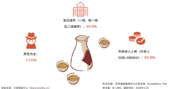 但白酒行业的发展困境也与相对有限的用户群体相关。艾瑞咨询报告显示,白酒消费人群多数以中高收入、生活在一线或新一线城市的男性为主。相对应着,商务需求是白酒主要的消费场景,大约占到47.5%。