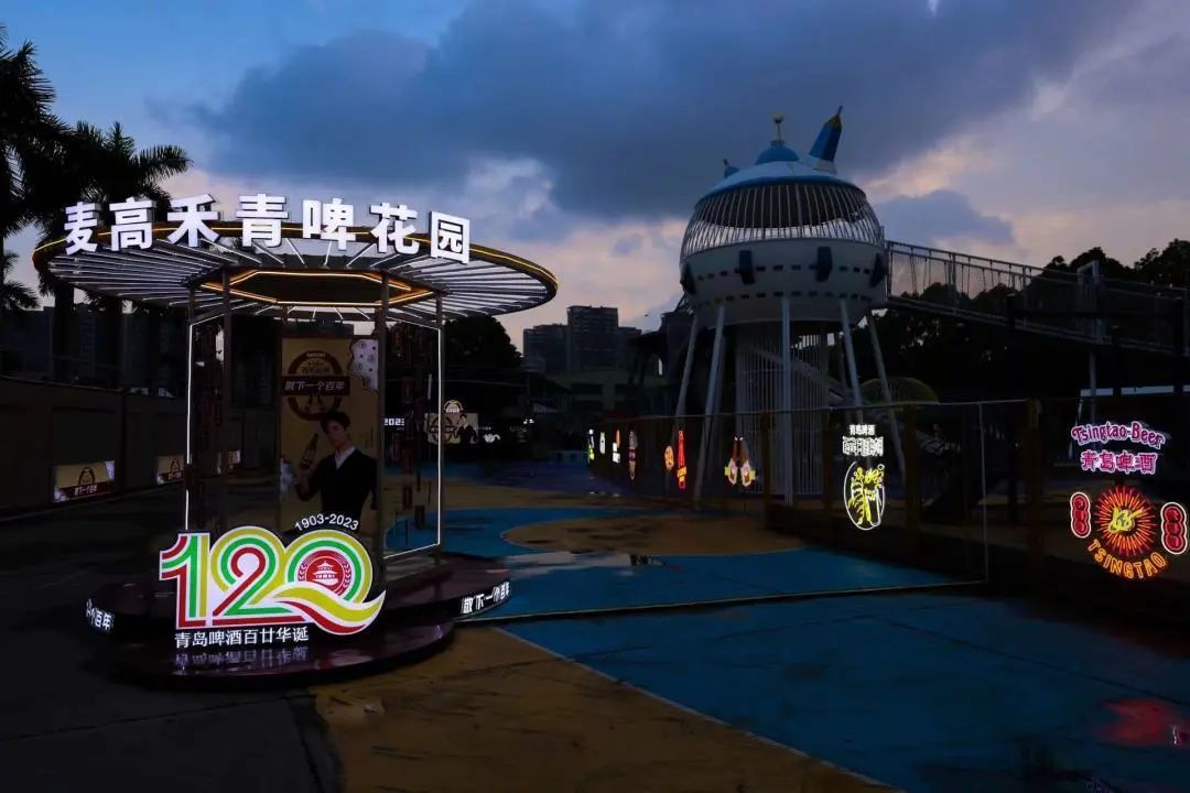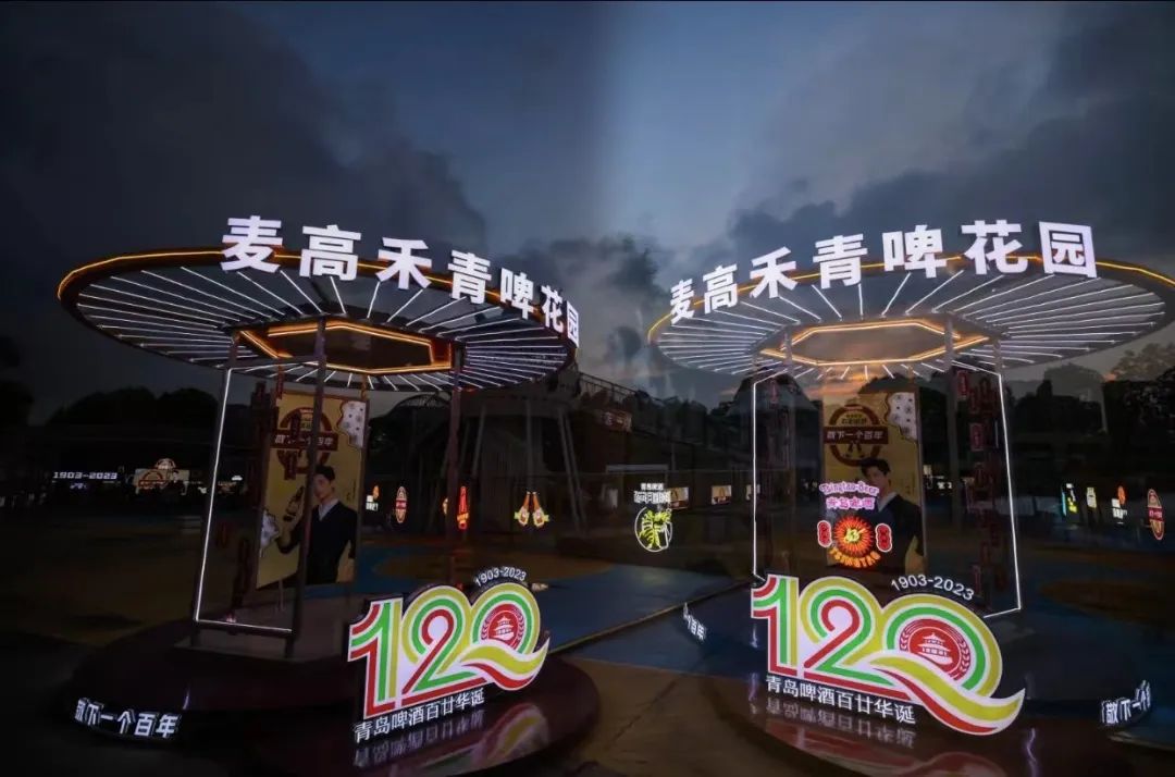 别出心裁的灯光元素布置,进入花园犹如置身于复古的世界,在朦胧灯光中,感受青岛啤酒百年的情怀,氛围感这不就来了~