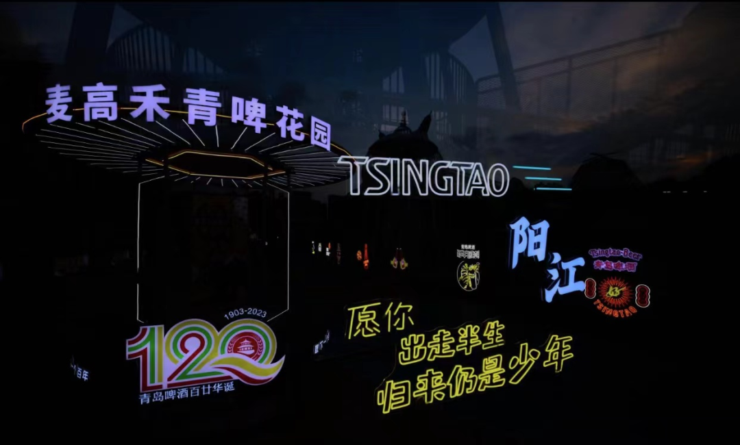 青岛国潮啤酒花园,围绕以百年国潮这个主题进行布置,大量的灯光元素,每一位到来宾客都能感受到百年国潮的魅力!