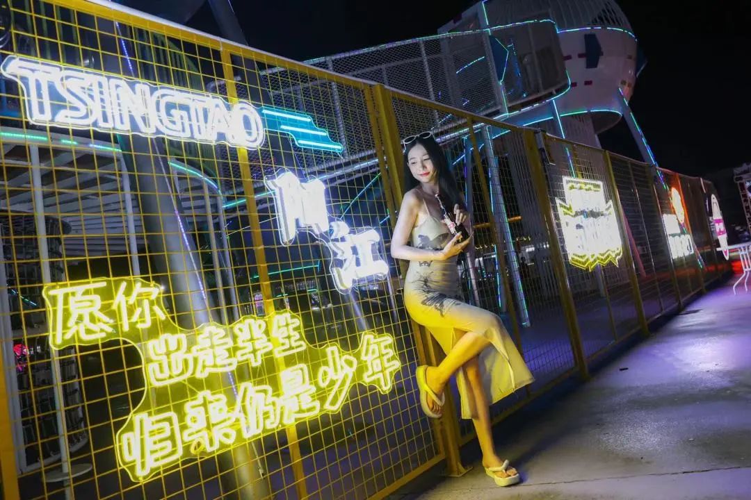 轻松游玩,放松自己,在青岛国潮啤酒花园随便一站,都能拍出时代感十足的照片!