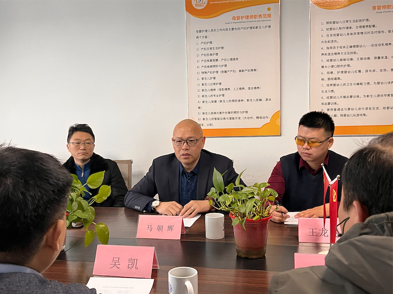 洽谈上,宝华街街道党工委副书记、办事处主任吴凯致辞,对各政企相关领导表示欢迎,并详细介绍了达恩门德(山东)科技企业集团有限公司的背景和具体的对口协作计划。