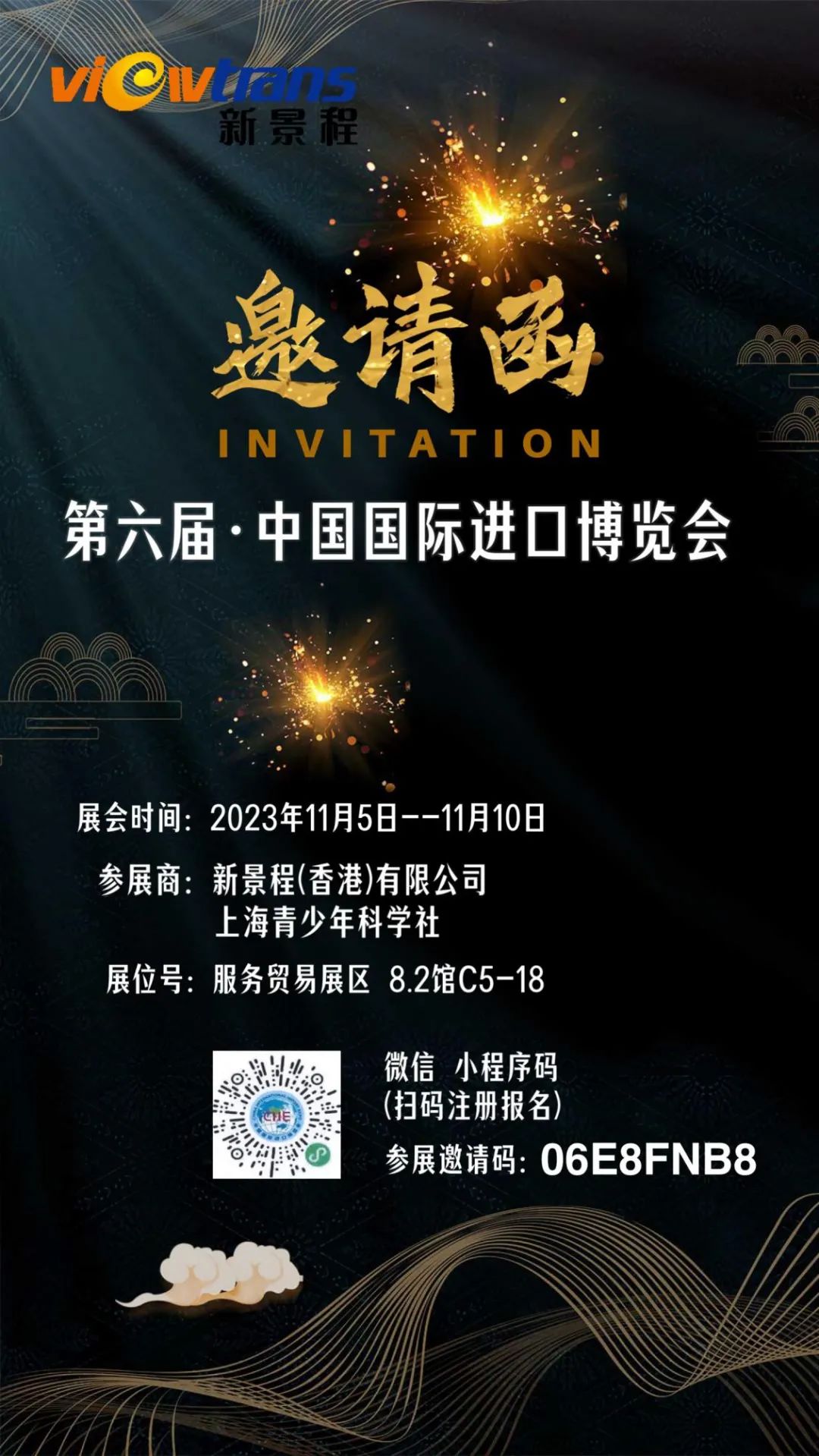 第六届中国国际进口博览会(以下简称进博会)将于2023年11月5日-10日在上海国家会展中心举办,届时上海青少年科学社将联合新景程(香港)有限公司共同设置展位,欢迎您注册观众证件参与本届盛会并前往我们的展位进行洽谈咨询!