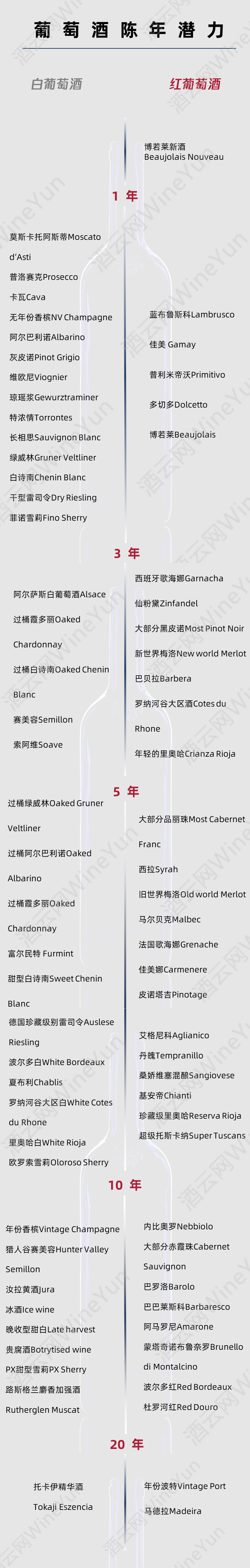 市场主流酒款的陈年潜力区间,不妨收藏起来,方便买酒时拿来参考一下。