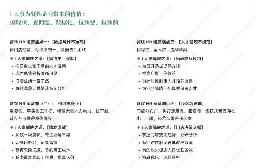 在竞争激烈的餐饮行业,i人事希望作为顾问和伙伴,共同探索适合的发展路径。由此,我们希望通过《2023创新实践案例:餐饮业HR与组织提效》白皮书为餐饮企业提供支持和启示。