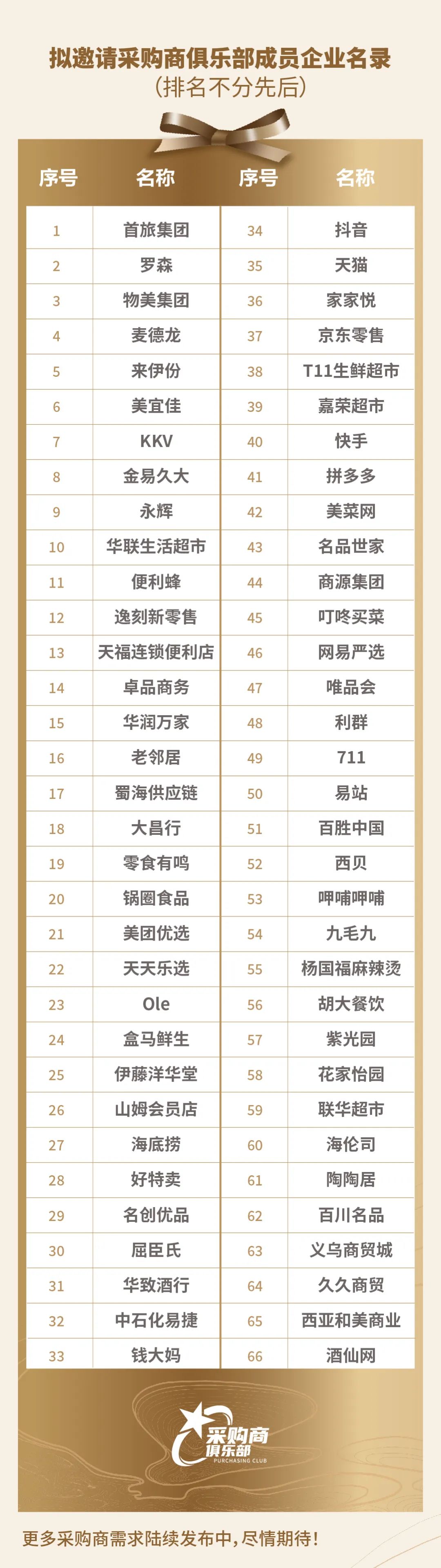 第109届全国糖酒会VIP采购商俱乐部会员企业采购需求发布(第六批)