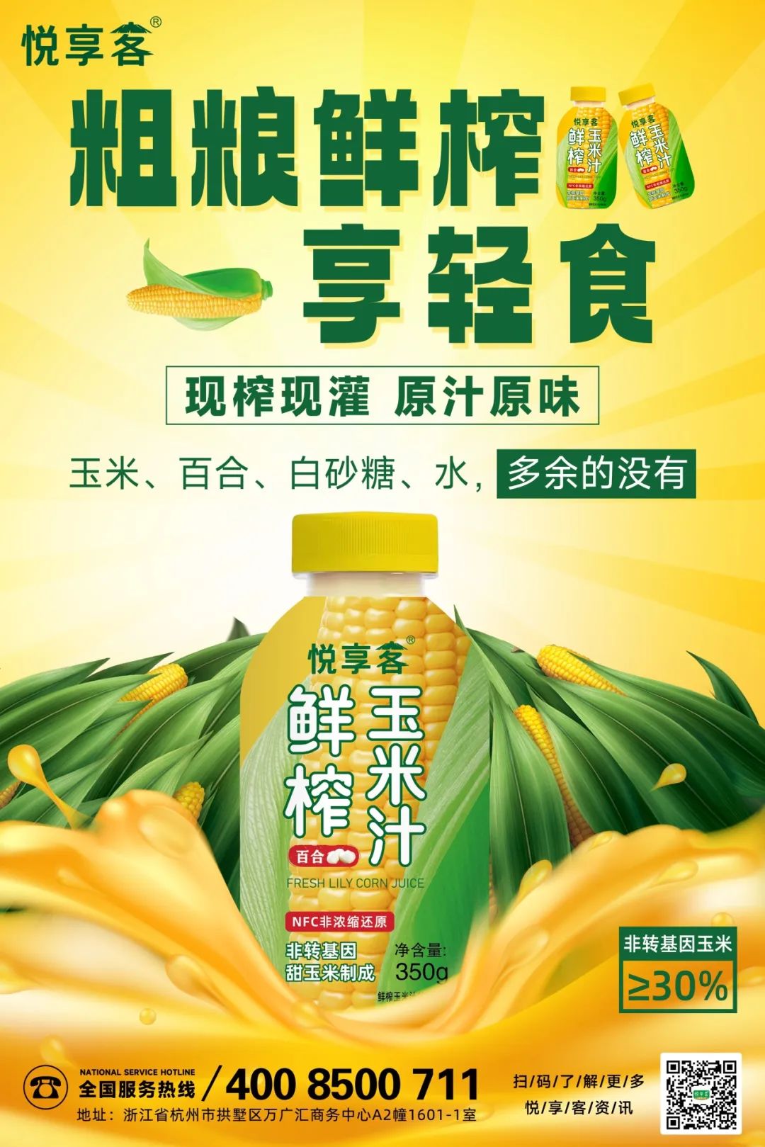 悦享客鲜榨玉米汁,适合全家各年龄段人群的健康饮品,精选绿色有机非转基因甜玉米,营养成分更易吸收,膳食纤维多,优质蛋白多,富含丰富氨基酸等多种营养元素。