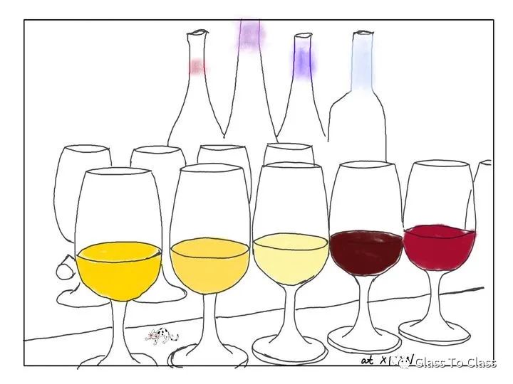 还有一些粉红色的品种,如灰皮诺(Pinot Gris)、琼瑶浆(Gewurztraminer)、灰长相思(Sauvignon Gris)等。葡萄皮淡淡的粉红色。但这些品种通常也是用来酿造白葡萄酒,归类的时候也就归到了白葡萄品种里面了。通过短时间的浸渍,红葡萄皮上的颜色会释放一些到葡萄汁里,再把葡萄皮去除掉,就可以酿造桃红葡萄酒了。或者将红、白葡萄酒混合在一起,也可以酿造出桃红葡萄酒。葡萄酒按照颜色可以分为三类:红葡萄酒、白葡萄酒、桃红葡萄酒。按照甜度可以分为干型、半干型、半甜型、甜型葡萄酒。各种颜色的葡萄酒也可以有不同的甜度,比如干白葡萄酒、干红葡萄酒、干型桃红葡萄酒、甜白葡萄酒、甜型红葡萄酒、甜型桃红葡萄酒等。